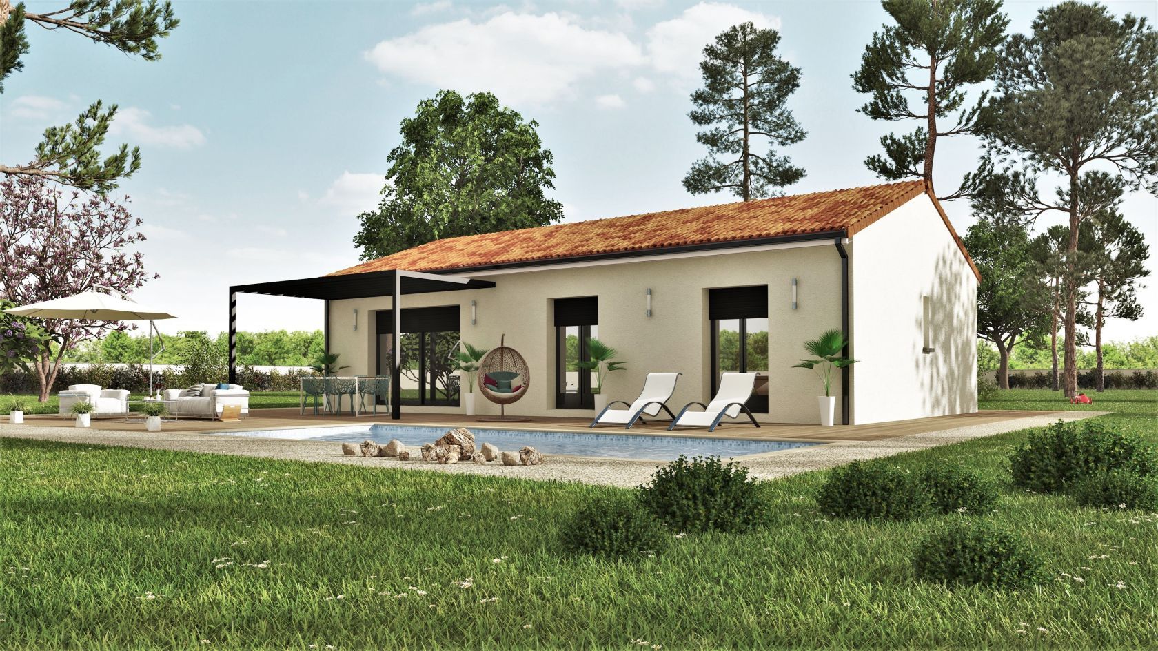Prix avec assurance dommages-ouvrage comprise, VRD non compris, terrain non viabilisé, frais de notaire non compris, frais divers non compris. Terrain sélectionné et vu pour vous sous réserve de disponibilité et au prix indiqué par notre partenaire foncier. Plans contractuels, visuels non contractuels.