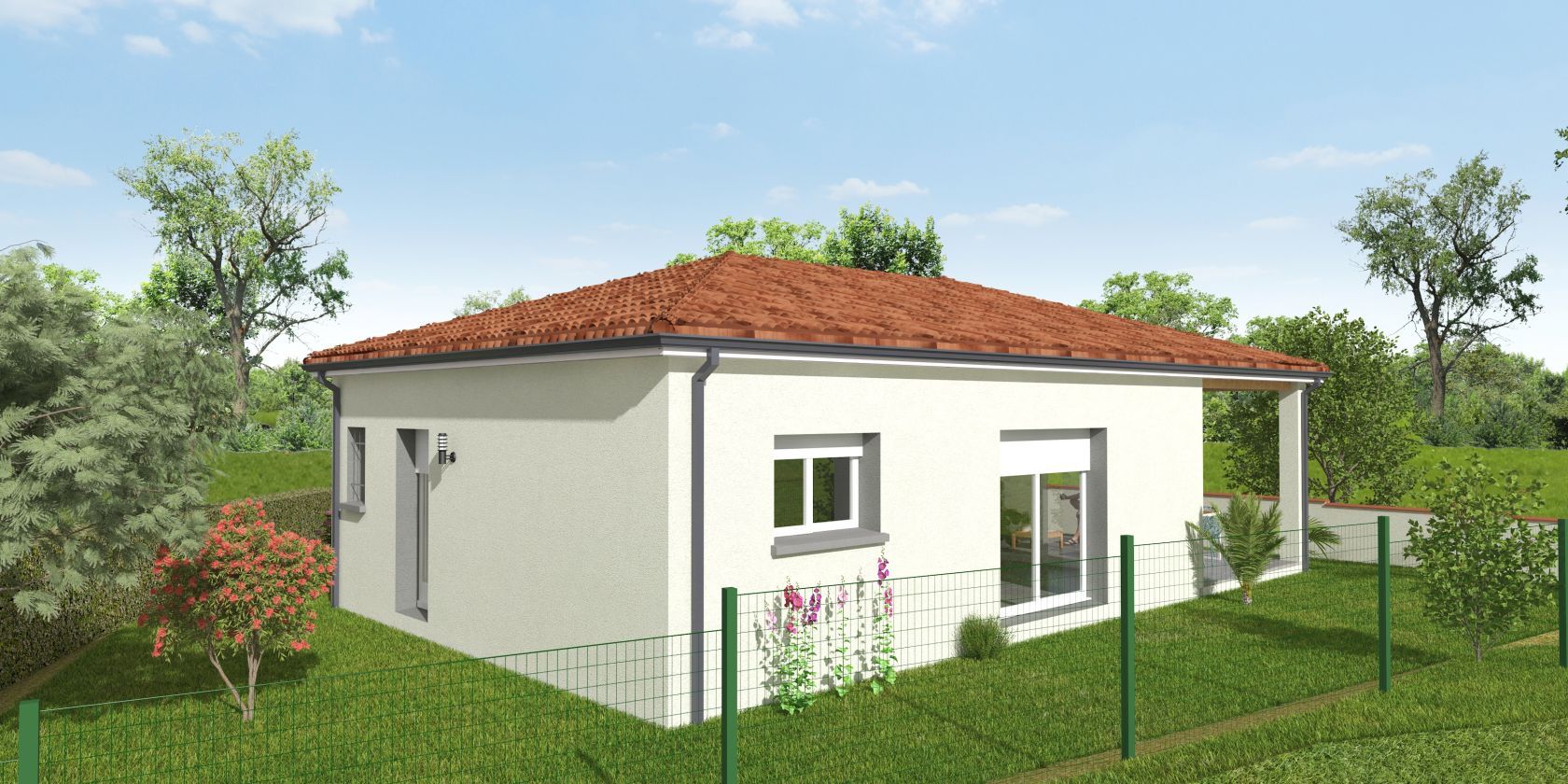 Prix avec assurance dommages-ouvrage comprise, VRD non compris, terrain viabilisé, frais de notaire non compris, frais divers non compris. Terrain sélectionné et vu pour vous sous réserve de disponibilité et au prix indiqué par notre partenaire foncier. Plans contractuels, visuels non contractuels.