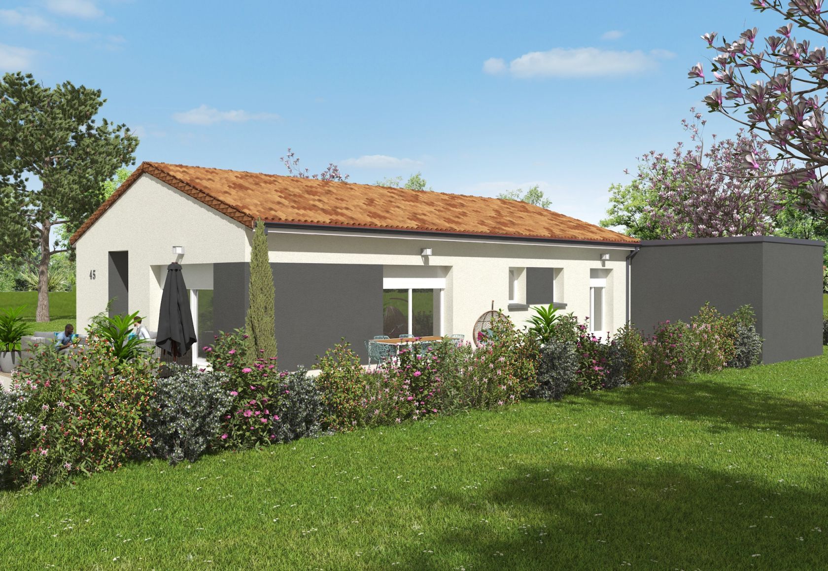 Prix avec assurance dommages-ouvrage comprise, VRD non compris, terrain viabilisé, frais de notaire non compris, frais divers non compris. Terrain sélectionné et vu pour vous sous réserve de disponibilité et au prix indiqué par notre partenaire foncier. Conditions et visuels non contractuels.