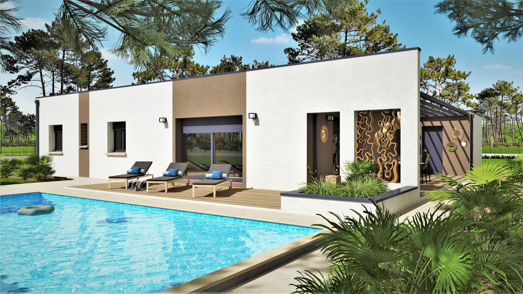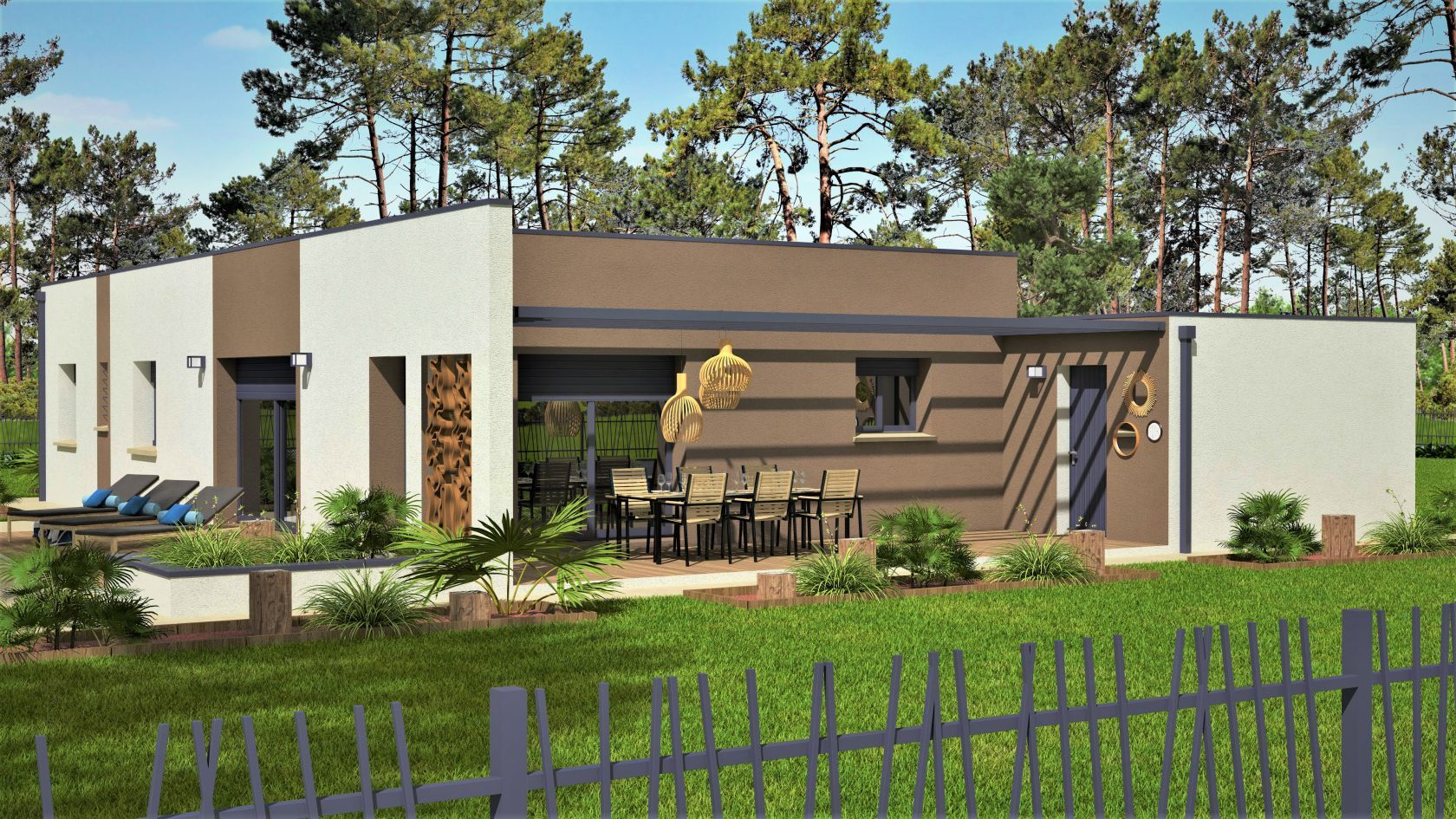 Prix avec assurance dommages-ouvrage comprise, VRD non compris, terrain viabilisé, frais de notaire non compris, frais divers non compris. Terrain sélectionné et vu pour vous sous réserve de disponibilité et au prix indiqué par notre partenaire foncier. Plans contractuels, visuels non contractuels.