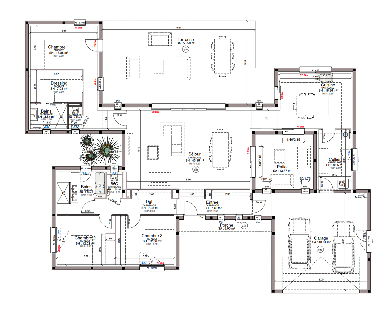 Prix avec assurance dommages-ouvrage comprise, VRD non compris, terrain viabilisé, frais de notaire non compris, frais divers non compris. Terrain sélectionné et vu pour vous sous réserve de disponibilité et au prix indiqué par notre partenaire foncier. Plans contractuels, visuels non contractuels.
