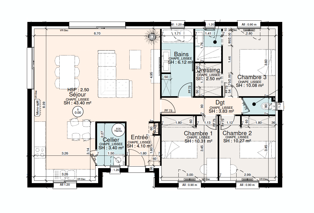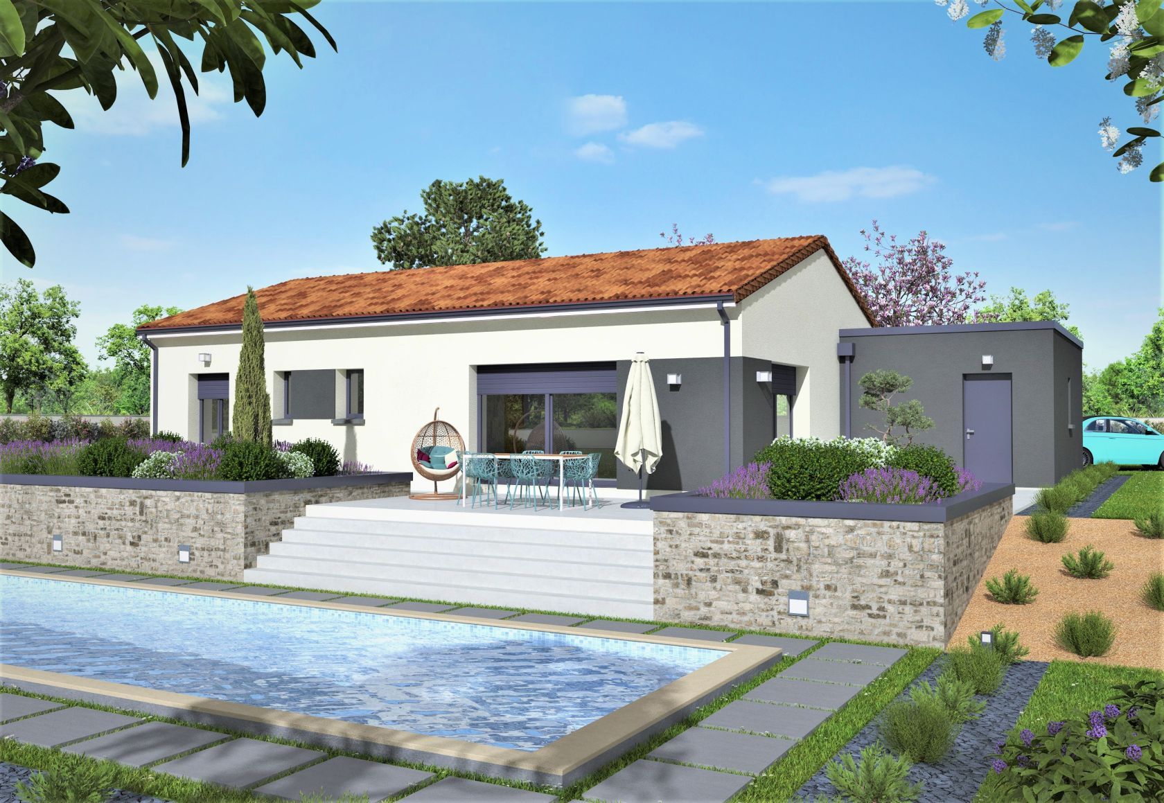 Prix avec assurance dommages-ouvrage comprise, VRD non compris, terrain viabilisé, frais de notaire non compris, frais divers non compris. Terrain sélectionné et vu pour vous sous réserve de disponibilité et au prix indiqué par notre partenaire foncier. Plans contractuels, visuels non contractuels.