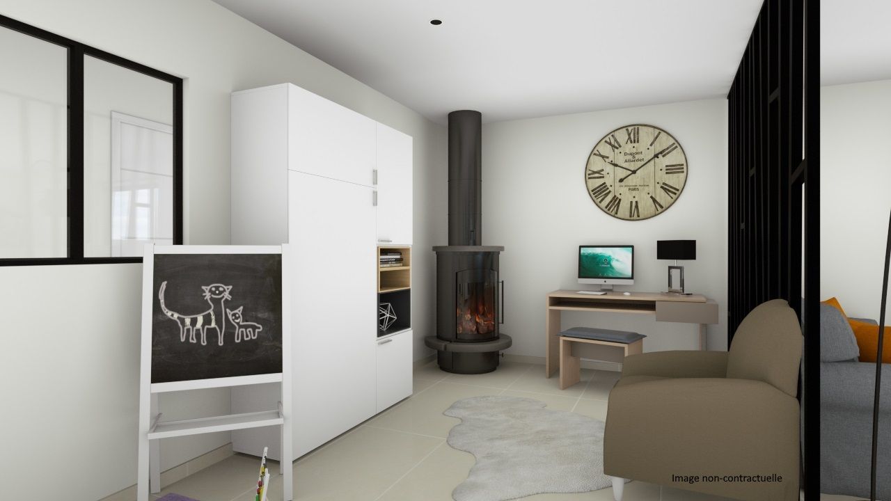 Alliant tradition et modernité, le modèle « Orion 106 », proposé ici, offre un aménagement intérieur de 106 m² habitables, dotés, au RDC, d’un cellier/buanderie attenant à une cuisine ouverte sur un séjour lumineux et traversant de plus de 44m². A l’étage, la partie nuit se compose astucieusement de 4 chambres de 10 à 11 m², d’une salle de bains et d'un WC séparé.