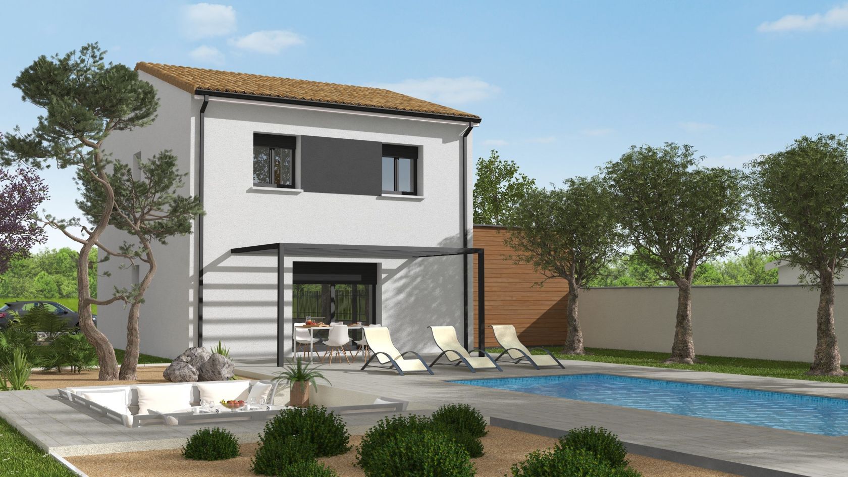 Prix avec assurance dommages-ouvrage comprise, VRD non compris, terrain non viabilisé, frais de notaire non compris, frais divers non compris. Terrain sélectionné et vu pour vous sous réserve de disponibilité et au prix indiqué par notre partenaire foncier. Plans contractuels, visuels non contractuels.