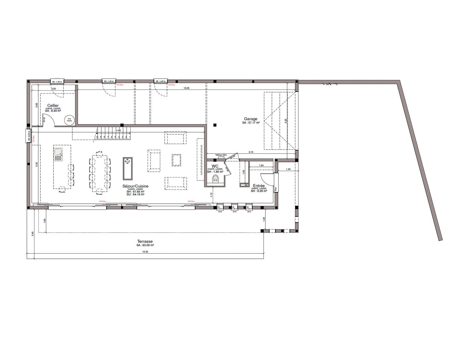D'un style épuré, fonctionnel et élégant, cette maison T4 est modifiable, à votre convenance, comme tous les créations Villas et Maisons de France.