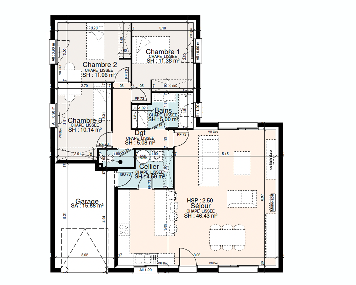 Prix avec assurance dommages-ouvrage comprise, VRD non compris, terrain non viabilisé, frais de notaire non compris, frais divers non compris. Terrain sélectionné et vu pour vous sous réserve de disponibilité et au prix indiqué par notre partenaire foncier. Plans contractuels, visuels non contractuels.