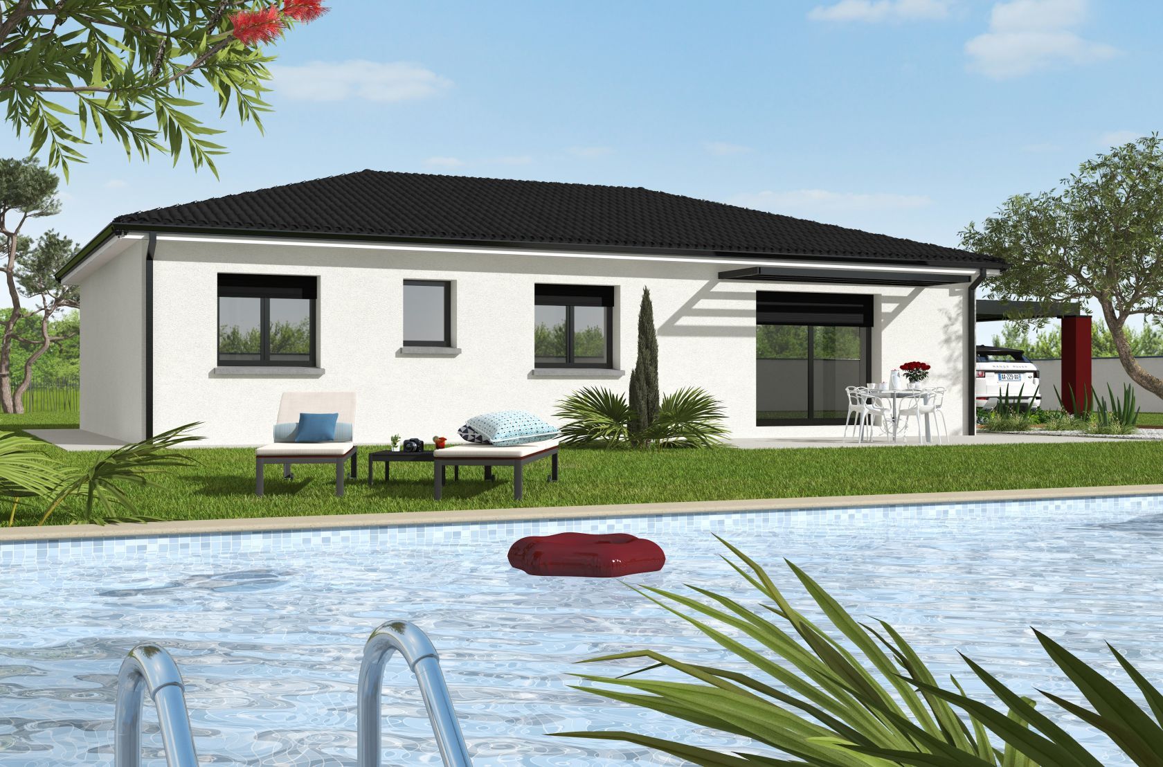 Prix avec assurance dommages-ouvrage comprise, VRD non compris, terrain viabilisé, frais de notaire non compris, frais divers non compris. Terrain sélectionné et vu pour vous sous réserve de disponibilité et au prix indiqué par notre partenaire foncier. Plans contractuels, visuels non contractuels.