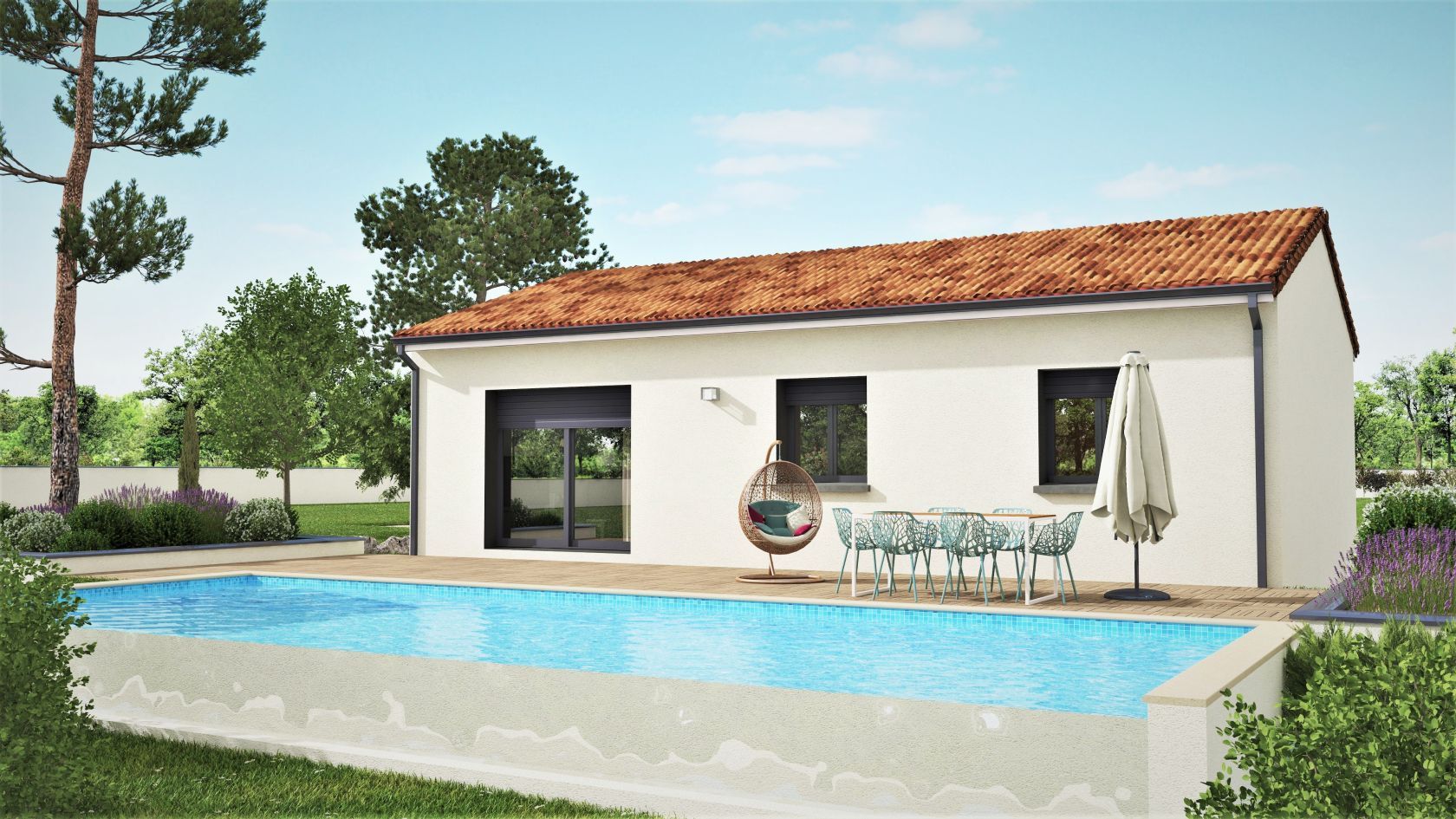 Prix avec assurance dommages-ouvrage comprise, VRD non compris, terrain viabilisé, frais de notaire non compris, frais divers non compris. Terrain sélectionné et vu pour vous sous réserve de disponibilité et au prix indiqué par notre partenaire foncier. Plans contractuels, visuels non contractuels.